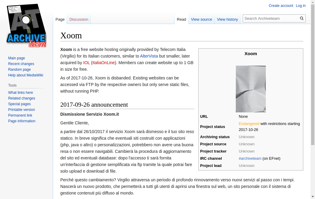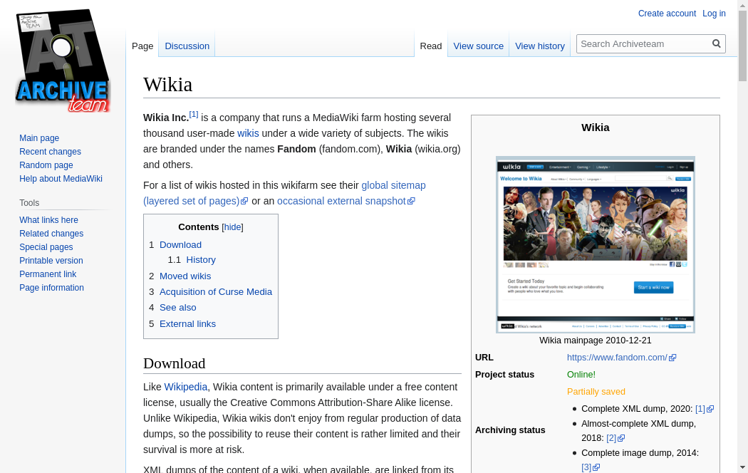 | https://wiki.archiveteam.org/index.php/Wikia | Tue, 19 Oct 2021 03:29:31 GMT