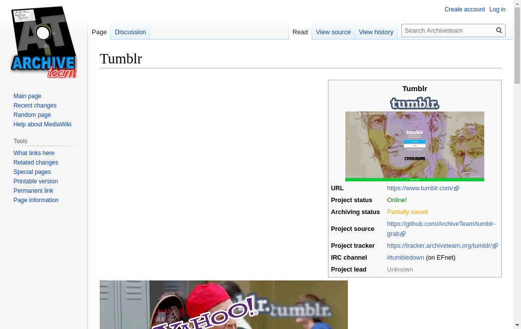 | https://wiki.archiveteam.org/index.php/Tumblr | Tue, 19 Oct 2021 03:08:20 GMT