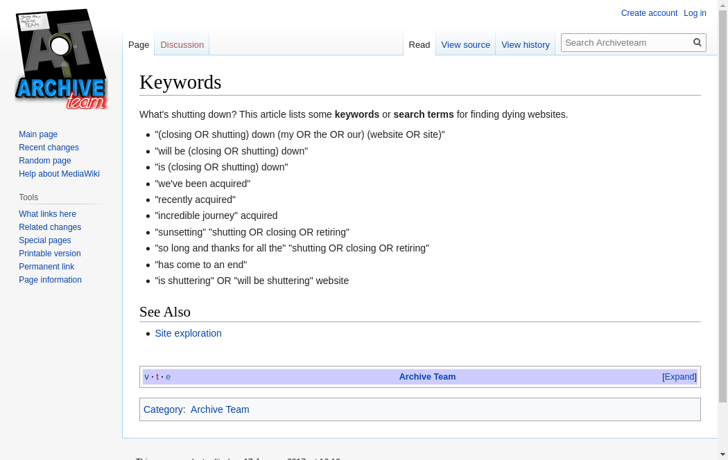 | https://wiki.archiveteam.org/index.php/Keywords | Tue, 19 Oct 2021 20:57:36 GMT