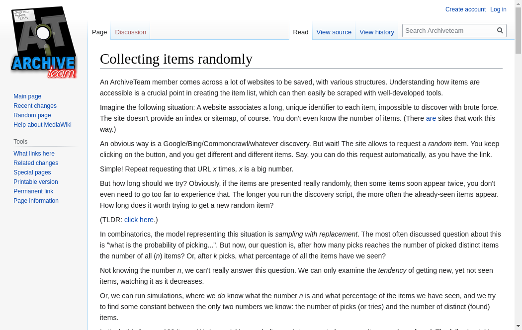 | https://wiki.archiveteam.org/index.php/Collecting_items_randomly | Tue, 19 Oct 2021 20:57:42 GMT
