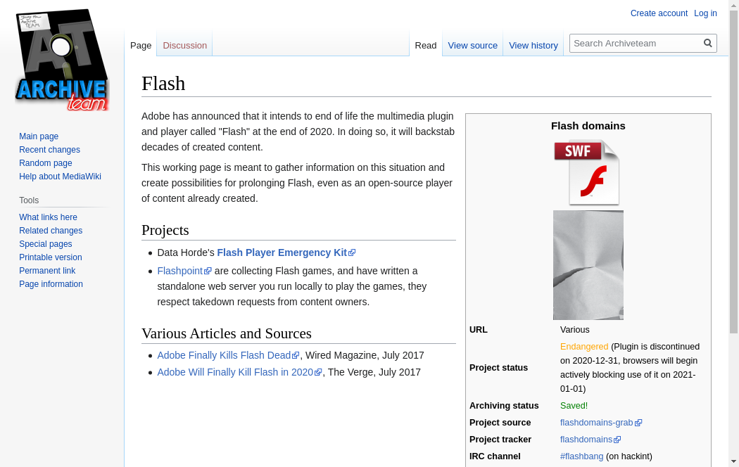 | https://wiki.archiveteam.org/index.php/Flash | Tue, 19 Oct 2021 02:09:40 GMT