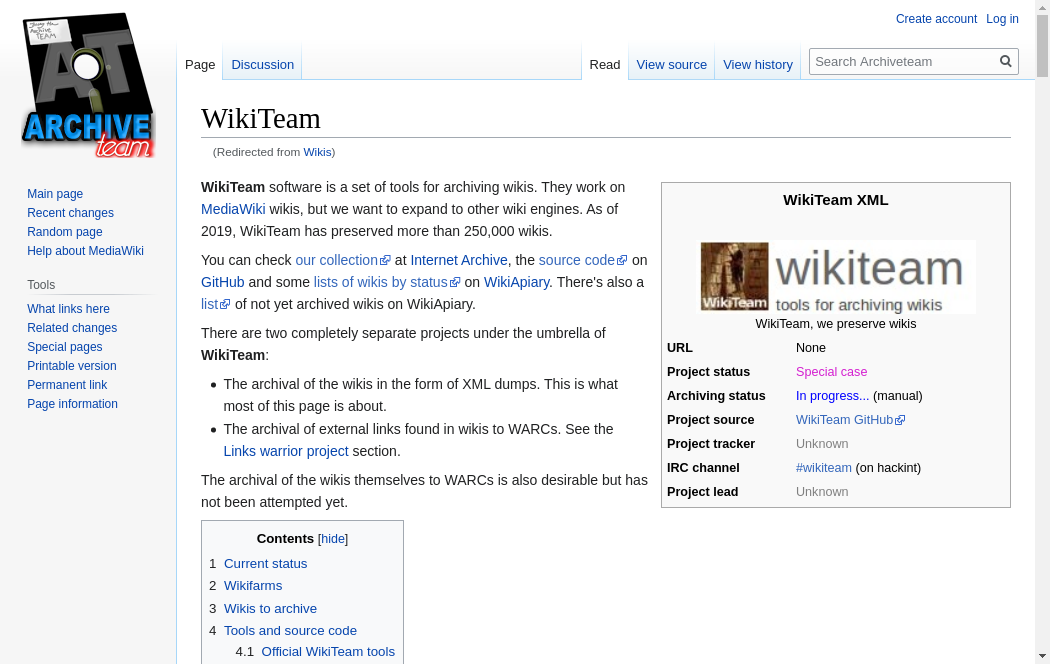 | https://wiki.archiveteam.org/index.php/WikiTeam | Tue, 19 Oct 2021 20:56:41 GMT