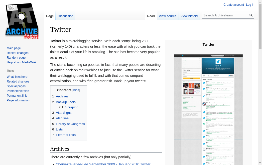 | https://wiki.archiveteam.org/index.php/Twitter | Tue, 19 Oct 2021 01:35:02 GMT