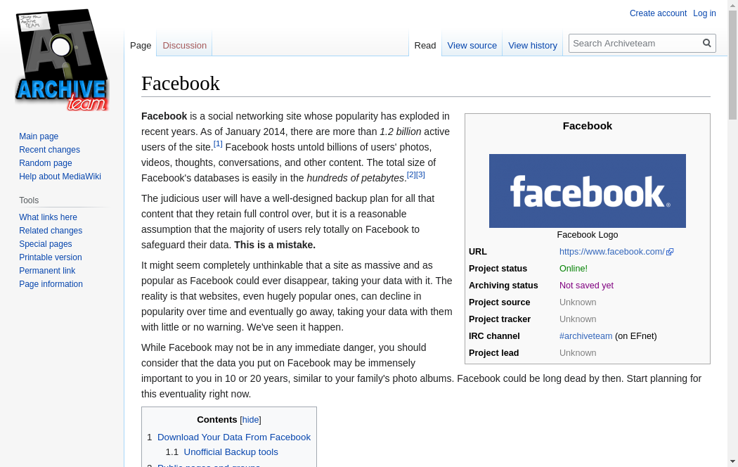 | https://wiki.archiveteam.org/index.php/Facebook | Mon, 18 Oct 2021 22:13:14 GMT