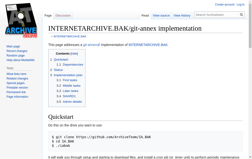 | http://wiki.archiveteam.org/index.php?title=INTERNETARCHIVE.BAK/git-annex_implementation | Mon, 18 Oct 2021 23:39:27 GMT