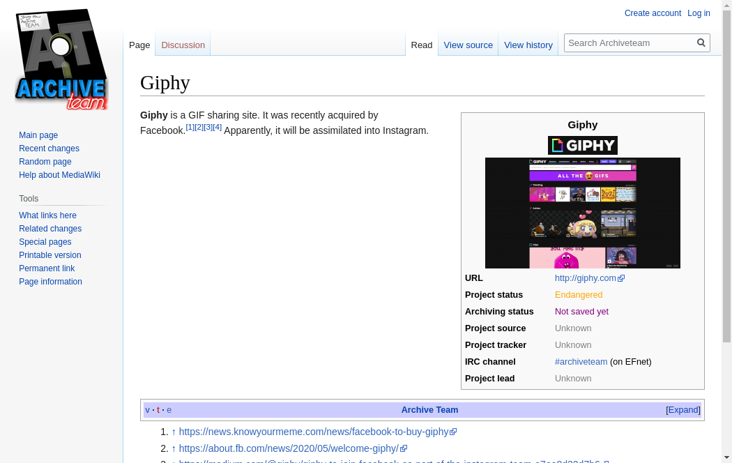 | https://wiki.archiveteam.org/index.php/Giphy | Tue, 19 Oct 2021 02:07:49 GMT