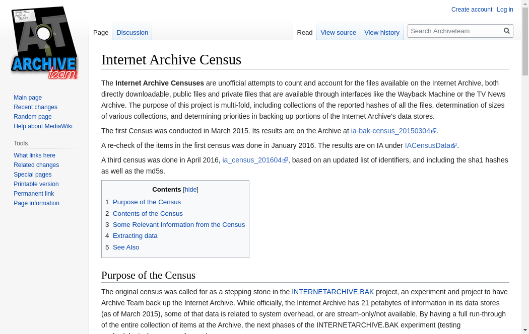 | https://wiki.archiveteam.org/index.php/Internet_Archive_Census | Mon, 18 Oct 2021 23:51:50 GMT