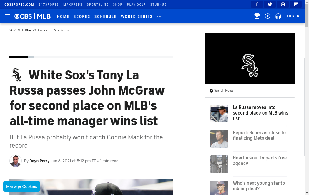 | https://www.cbssports.com/mlb/news/white-soxs-tony-la-russa-passes-john-mcgraw-for-second-place-on-mlbs-all-time-manager-wins-list/ | Mon, 29 Nov 2021 14:05:57 GMT