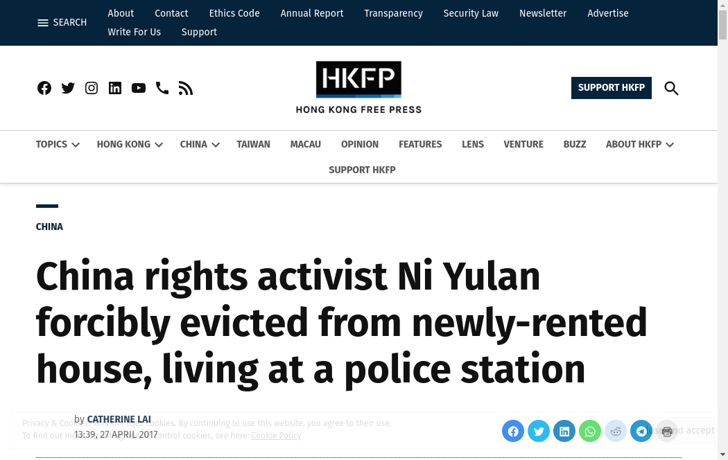 | https://hongkongfp.com/2017/04/27/china-rights-activist-ni-yulan-forcibly-evicted-newly-rented-house-living-police-station/ | Sun, 21 Nov 2021 19:17:54 GMT