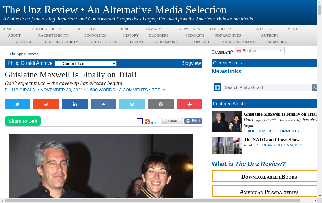 | https://www.unz.com/pgiraldi/ghislaine-maxwell-is-finally-on-trial/ | Tue, 30 Nov 2021 07:03:09 GMT | Archived webpage |