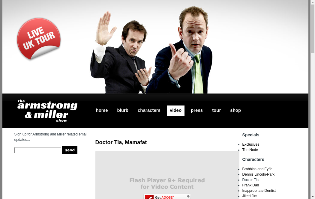 | http://www.armstrongandmiller.co.uk/video_doctor_tia.html (Orig site: https://web.archive.org/web/20091124231825/http://www.armstrongandmiller.co.uk/video_doctor_tia.html) | Thu, 16 Sep 2021 19:05:43 GMT | Archived webpage |