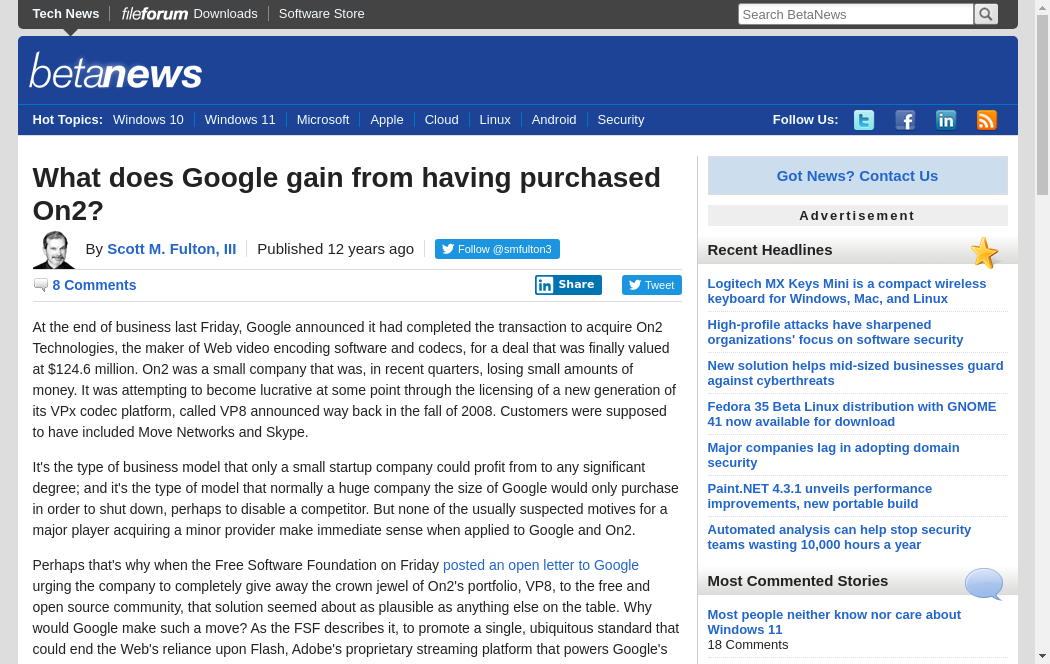 | https://betanews.com/2010/02/22/what-does-google-gain-from-having-purchased-on2/ | Wed, 29 Sep 2021 01:53:22 GMT | Archived webpage |