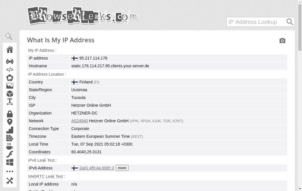 | https://browserleaks.com/ip | Wed, 25 May 2022 15:06:06 GMT | Archived webpage |