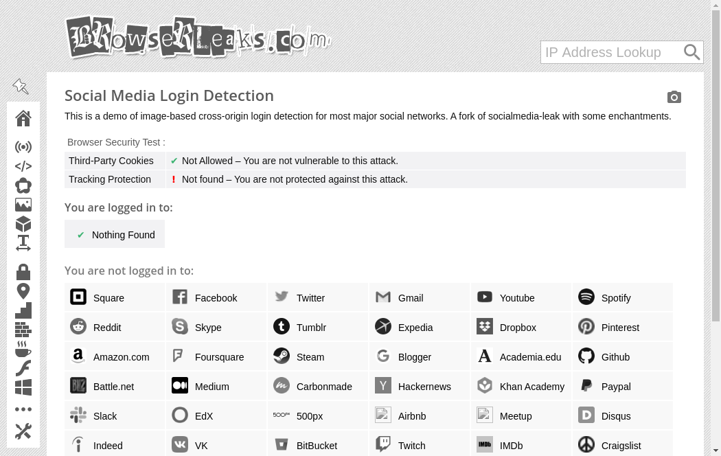 | https://browserleaks.com/social | Wed, 20 Oct 2021 05:17:19 GMT | Archived webpage |