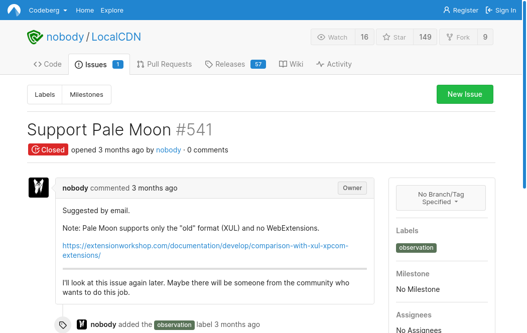 | https://codeberg.org/nobody/LocalCDN/issues/541 | Sat, 25 Sep 2021 06:37:46 GMT | Archived webpage |