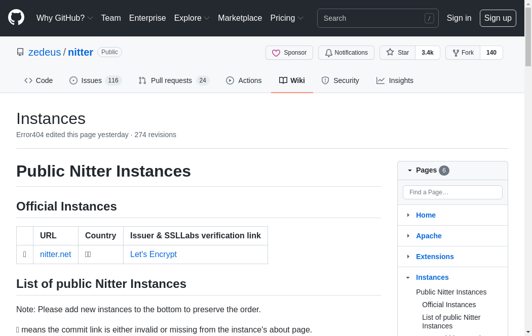 | https://github.com/zedeus/nitter/wiki/Instances | Wed, 02 Aug 2023 17:35:14 GMT | Archived webpage |