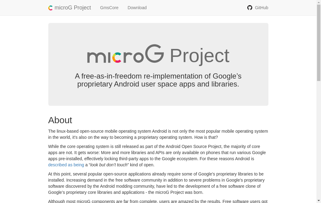 | https://microg.org/ | Mon, 06 Feb 2023 02:50:44 GMT | Archived webpage |