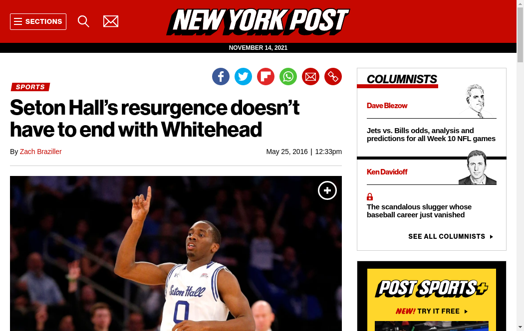 | https://nypost.com/2016/05/25/seton-halls-resurgence-doesnt-have-to-end-with-whitehead/ | Sun, 14 Nov 2021 17:15:17 GMT | Archived webpage |