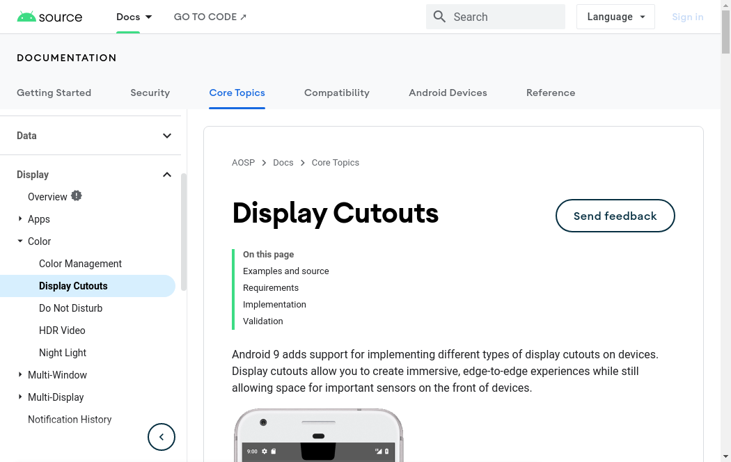 | https://source.android.com/devices/tech/display/display-cutouts | Wed, 03 Nov 2021 22:43:57 GMT