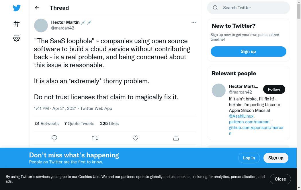 | https://twitter.com/marcan42/status/1409176583433179137 | Thu, 21 Dec 2023 17:15:58 GMT | Archived webpage |