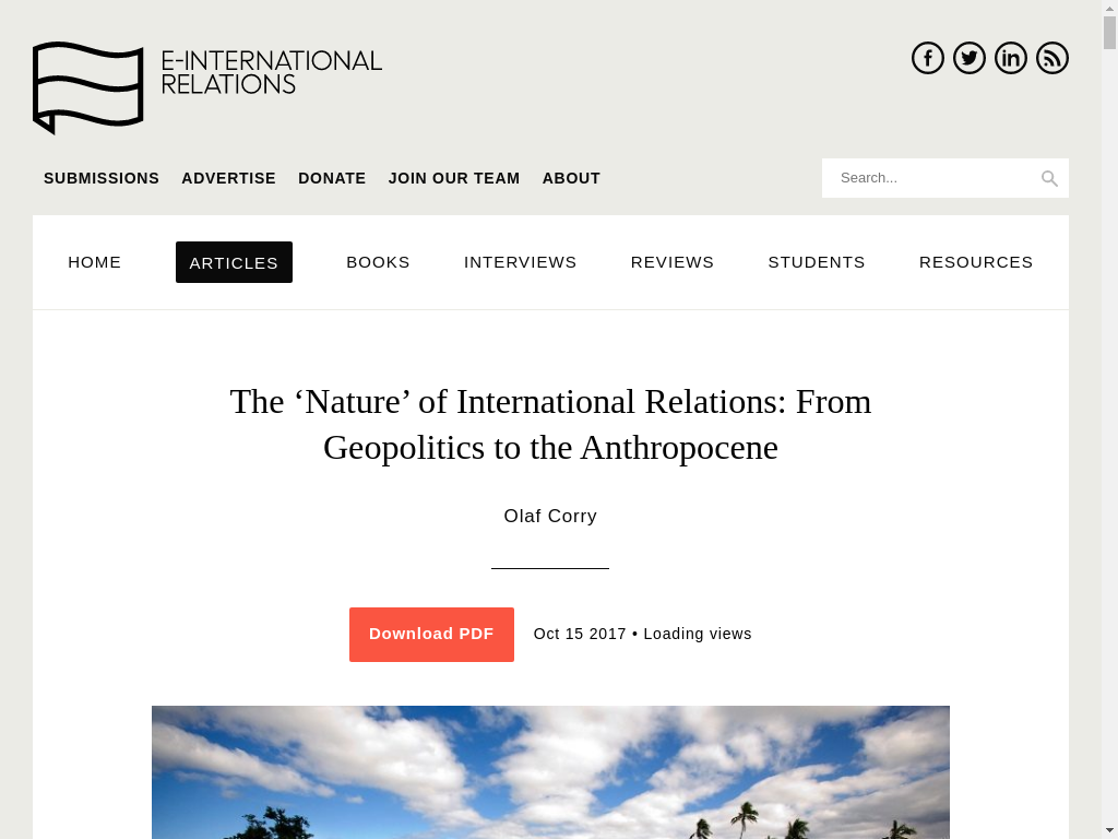 | https://www.e-ir.info/2017/10/15/the-nature-of-international-relations-from-geopolitics-to-the-anthropocene/ | Mon, 20 Dec 2021 01:22:14 GMT